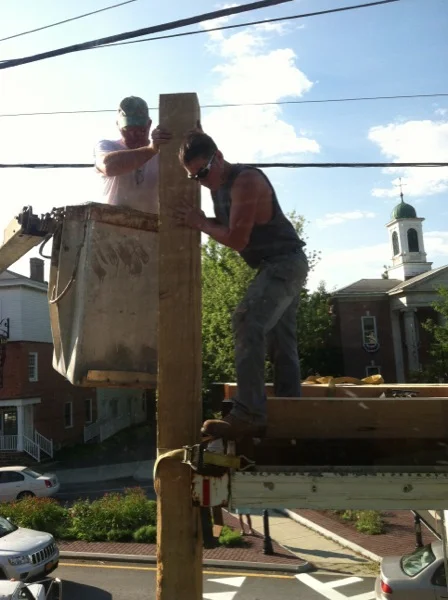 Todd Shield's crew worked their butts off today placing the posts for the new (old) porch. Amazing work!!! Great guys, every one.
